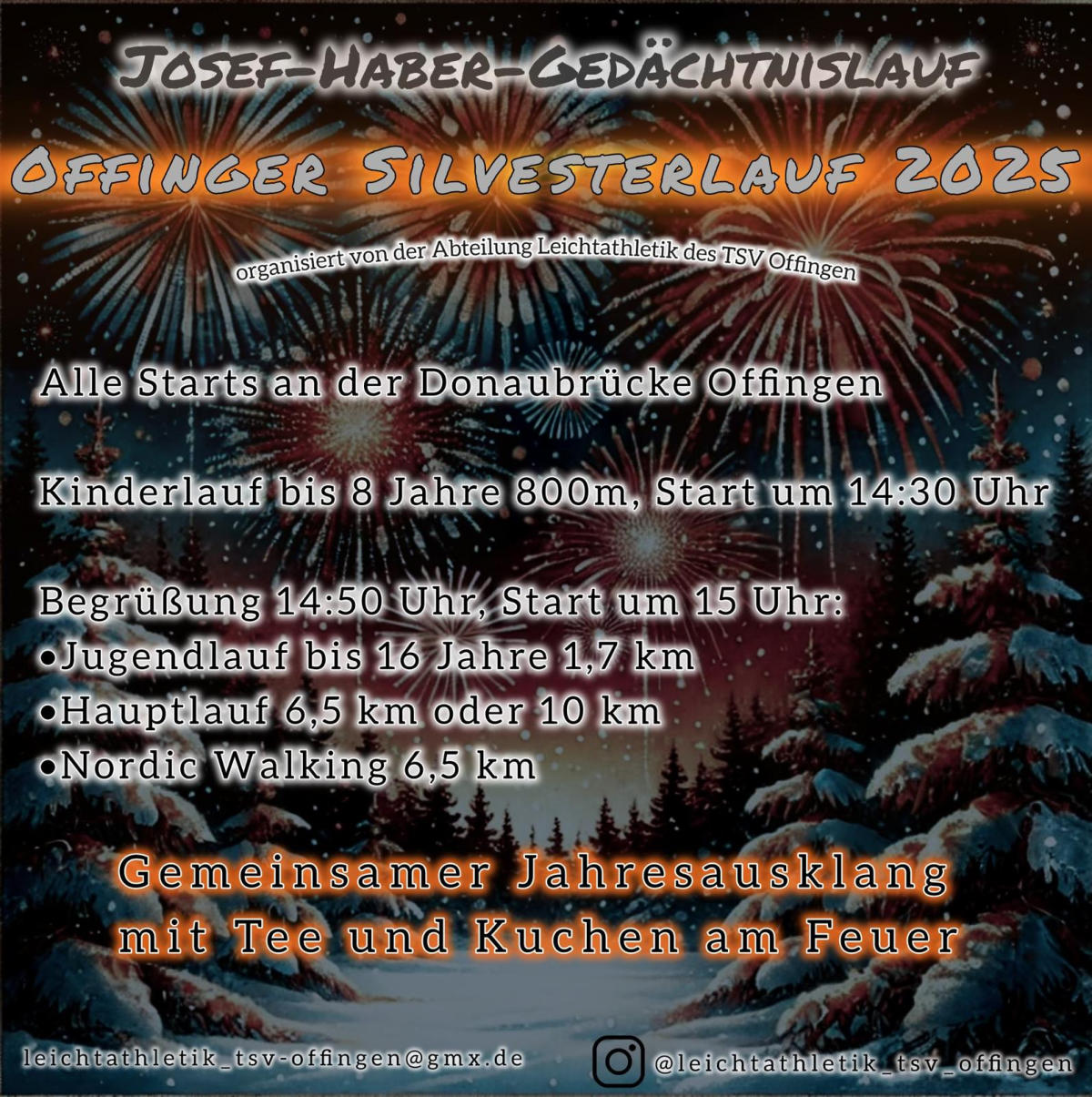Wie jedes Jahr steht auch 2025 mit dem Silvesterlauf der Abschluss eines erlebnisreichen Jahres beim TSV Offingen an. Wir freuen uns, mit möglichst vielen das Jahr auf diese Weise ausklingen lassen zu können. Bis dahin wünschen wir allen eine schöne Vorweihnachtszeit!TSV Offingen startet mit 29 Athleten beim diesjährigen Raunauer Crosslauf 2025Am vergangenen Sonntag, den 19.10.25 veranstaltete der TSV Niederraunau den diesjährigen 3. Raunauer Cross 2025. Der TSV Offingen konnte mit 29 gemeldeten Athleten einen neuen Rekord aufstellen. Die kleinsten Kinder mussten eine Strecke von 600m absolvieren. Hier gab es noch keine Wertung, jedoch bekam jedes Kind im Ziel einen Müsliriegel und eine Medaille für ihre tolle Leistung. Mannschaftswertung - 1000m – weiblich U10 7. Platz für den TSV Offingen (Tausend Lina (2017) 6:08 (16.) - Isfort Hannah (2016) 6:56 (29.) - Stark Josephine (2016) 7:13 (31.)Mannschaftswertung - 1000m – männlich U104. Platz für den TSV Offingen Berthold Tom (2017) 5:05 (6.) - Sauter Luis (2017) 5:45 (19.) - Soor Maximilian (2017) 6:47 (24.)Mannschaftswertung - 1000m – weiblich U122. Platz für den TSV Offingen Berthold Leni (2015) 5:58 (16.) - Weh Emily (2014) 6:17 (24.) - Fink Liana (2015) 6:27 (25.)Mannschaftswertung - 1000m – männlich U126. Platz für den TSV Offingen Sauter Max (2015) 4:56 (10.) - Tausend Leo (2015) 5:12 (18.) - Wolf Karl (2015) 5:46 (29.)In Altersgruppe M12 konnte Felix Bägendörfer den 6. Platz mit einer Zeit von 9:51min erzielen. Den 1. Platz konnte sich unser Athlet Jonas Langenmeier mit einer Zeit von 8:56min über 2000m für sich gewinnen. Seine Schwester Hanna Langenmeier konnte bei den W14 den 4. Platz mit einer Zeit von 10:36min über 2000m erzielen. Eine wirklich super Leistung. Unsere Trainierin Amelie Degele erreicht bei den Frauen im 3000m Lauf bei einer Zeit von 18:08min den 10. Platz. Eine tolle Leistung.